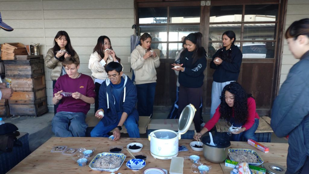 リンゴ狩りの後には、岩手のおいしい新米でおにぎりづくりにトライ